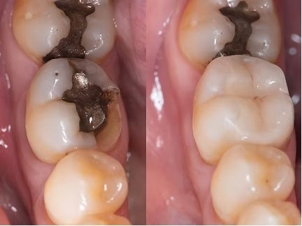Amalgamfüllungen können heute in der Regel sicher und unproblematisch durch zahnfarbene, amalgamfreie Restaurationen ersetzt werden. Die Entfernung erfolgt unter speziellen Schutzmaßnahmen wie Kofferdam (Spanngummi) und Absaugtechniken.